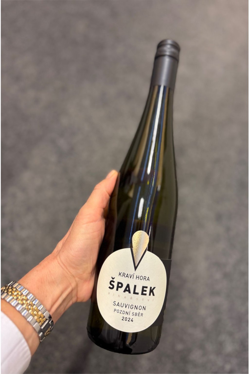 Suché bílé víno odrůdy Sauvignon ročníku 2024, pozdní sběr, z vinařství rodiny Špalkovy v Novém Šaldorfě.