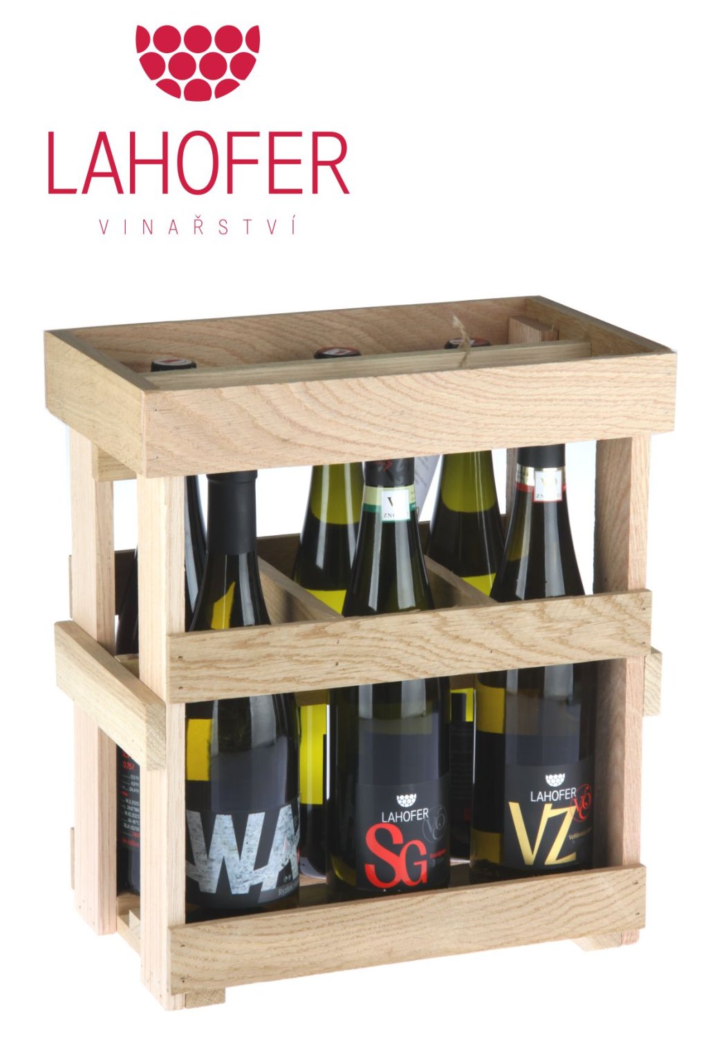 Vína jsou vložena v dřevěné přepravce, kterou lze snadno a bezpečně přenášet. Posíláme dopravní službou Messenger. Můžete koupit také přímo ve Vinařství LAHOFER v Dobšicích u Znojma.
